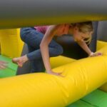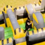 Sudionici se natječu na napuhujućem poligonu koji nudi jedinstvene izazove za tijelo i um.